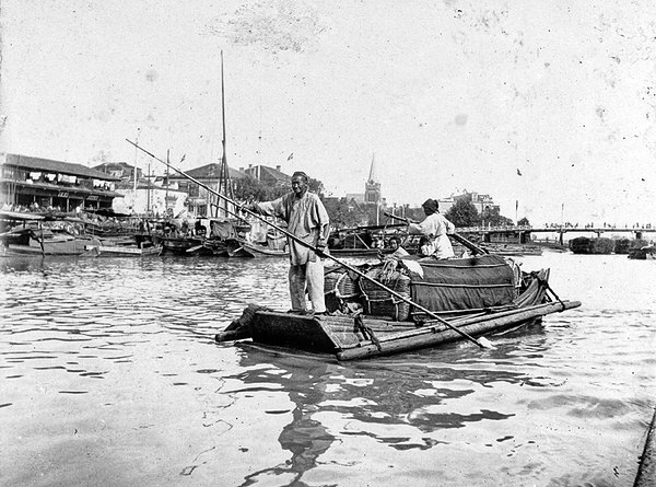 ภาพที่4 ภาพของครอบครัวชาวจีนกำลังขนย้ายสิ่งของ โดยใช้ไม้ยาวไปการเคลื่อนที่ของเรือ ในเเม่น้ำซูโจว ครีก ช่วงปลายราชวงศ์ชิง